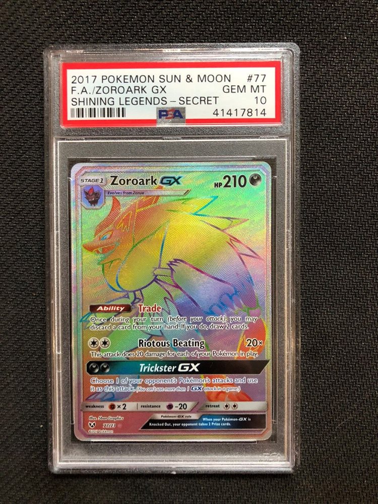 New listingpokemon card zoroark gx rainbow rare full art 77/73 shining legends ships asap.