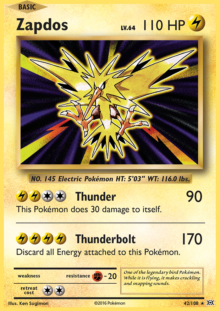 Download Zapdos Pokemon Kaart PNG. It usually lives in thunderclouds. It is vulnerable to ice and rock moves.